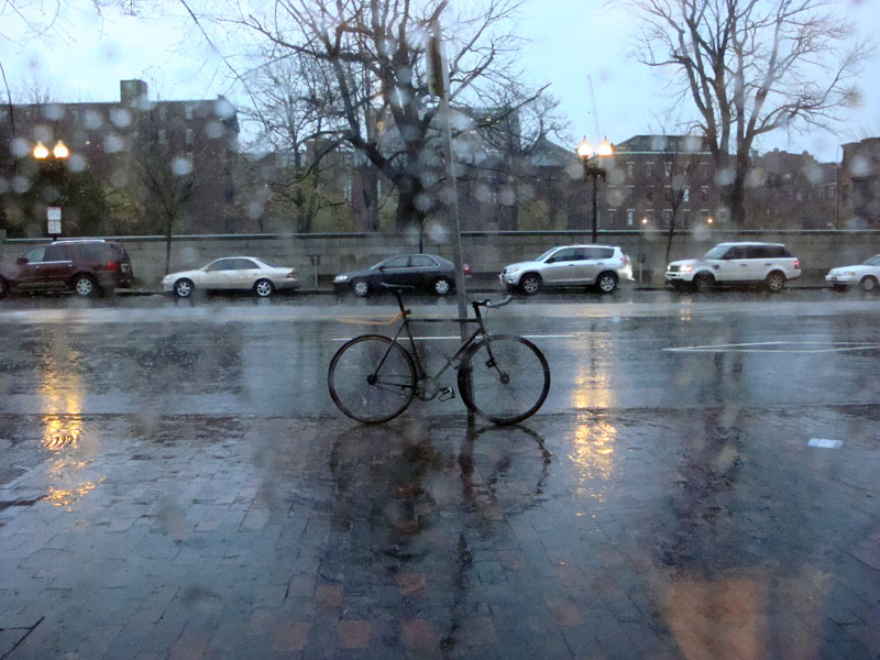 Then I remembered a post from Chicago Bike Blog, Justyna’s position on how we don’t HAVE to ride every day and I gave myself permission to not ride into work this morning. Then the funniest thing happened! As I began contemplating my alternatives I decided to ride anyway. It really seemed the least of the evils. In the end it turns out that was for the best, the rain ended and this has become a beautiful day. I strolled outside at lunchtime without even a jacket.