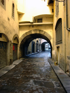 You might have to enlarge this photo to see the bicycle lurking in the alley.