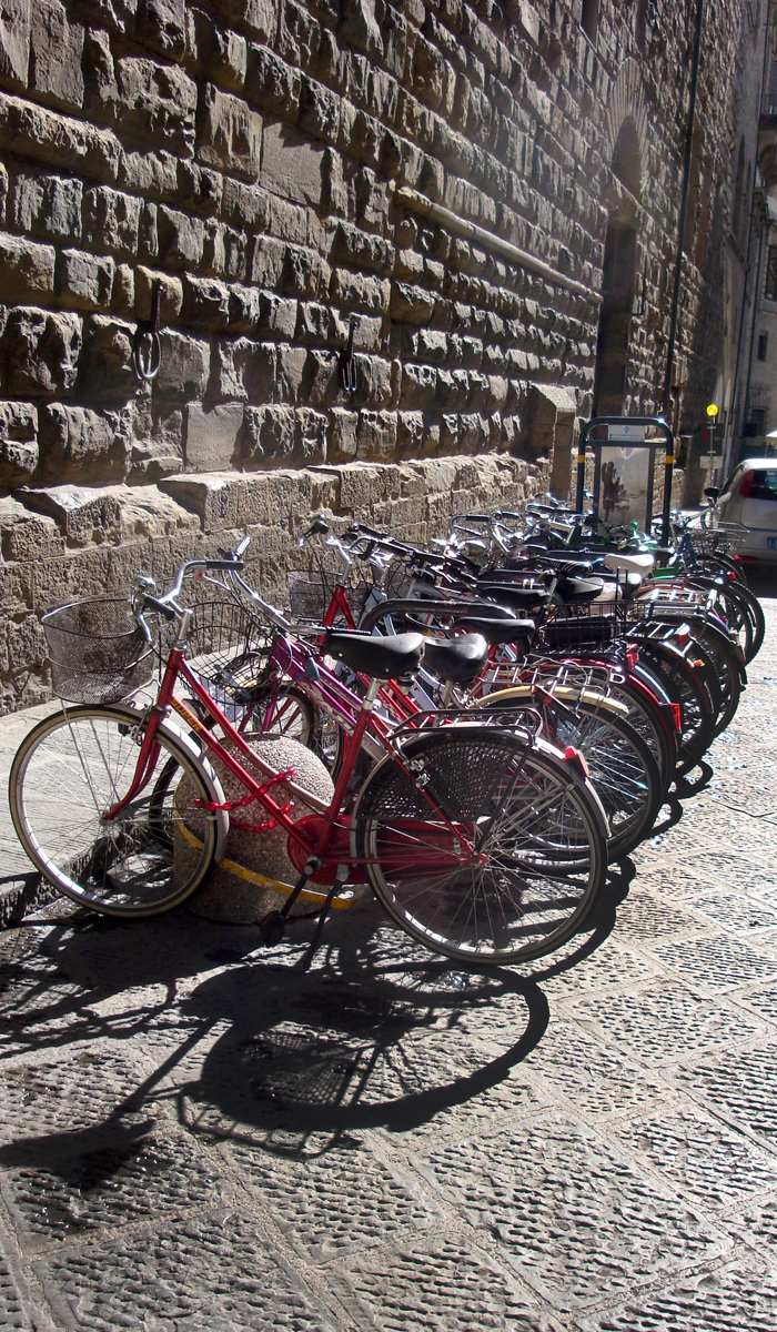 Every single rack outside of the train station in Florence was filled to capacity. While we waited for our train home to Rome we watched cyclist circling for a parking space like mall-shoppers at Christmas time.